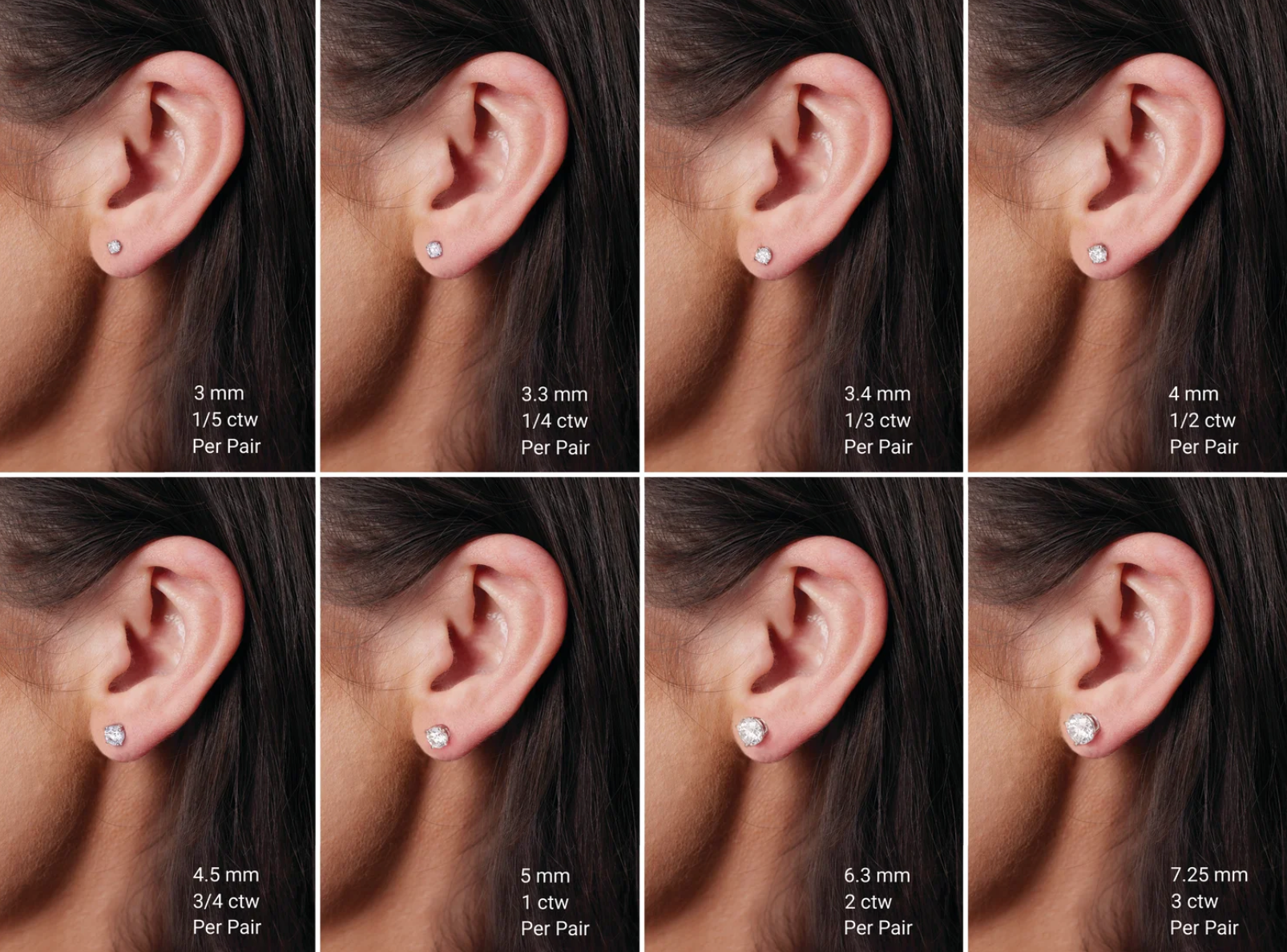 Shop JB Jewelers Round 4-Prong Lab Grown Diamond Solitaire Studs available in multiple sizes. Each pair of diamond studs that are 2 carat total weight & higher, are accompanied with an IGI diamond grading report.